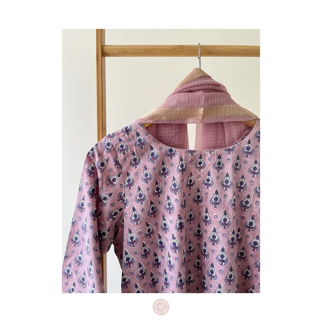 The set is beautifully done in hand block printed mul cotton with breezy kota zari dupatta in same tones. The kurta is A line with pockets and detailing on the neckline. The set is complete with same tone pants. Everyday summer essential ✨