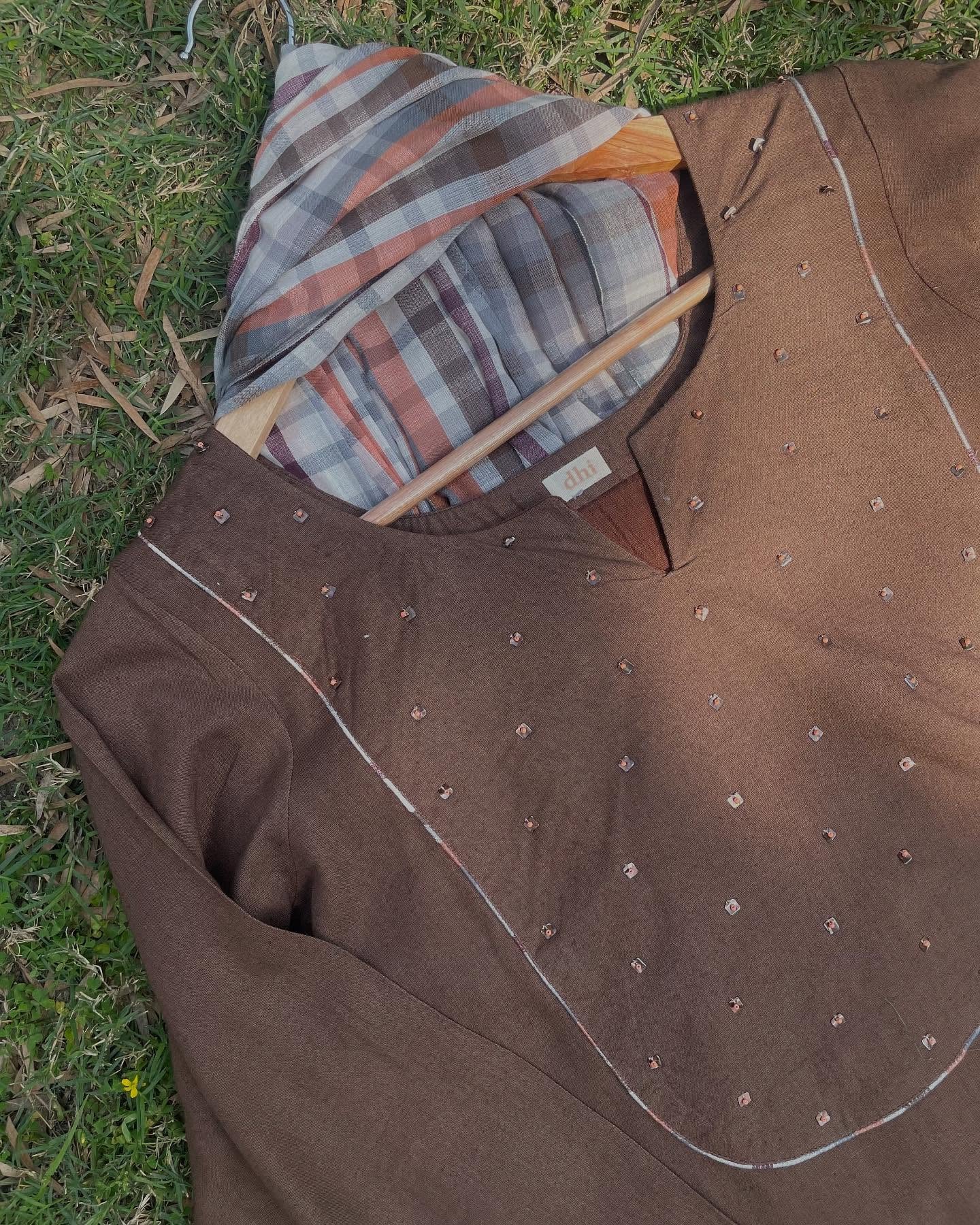Introducing a fresh new hue for the season. These sets are crafted in solid tones, adorned with delicate hand-tucked bead detailing that adds an elegant touch. Paired with vibrant Chettinad check dupattas, each look brings together tradition and modern simplicity.