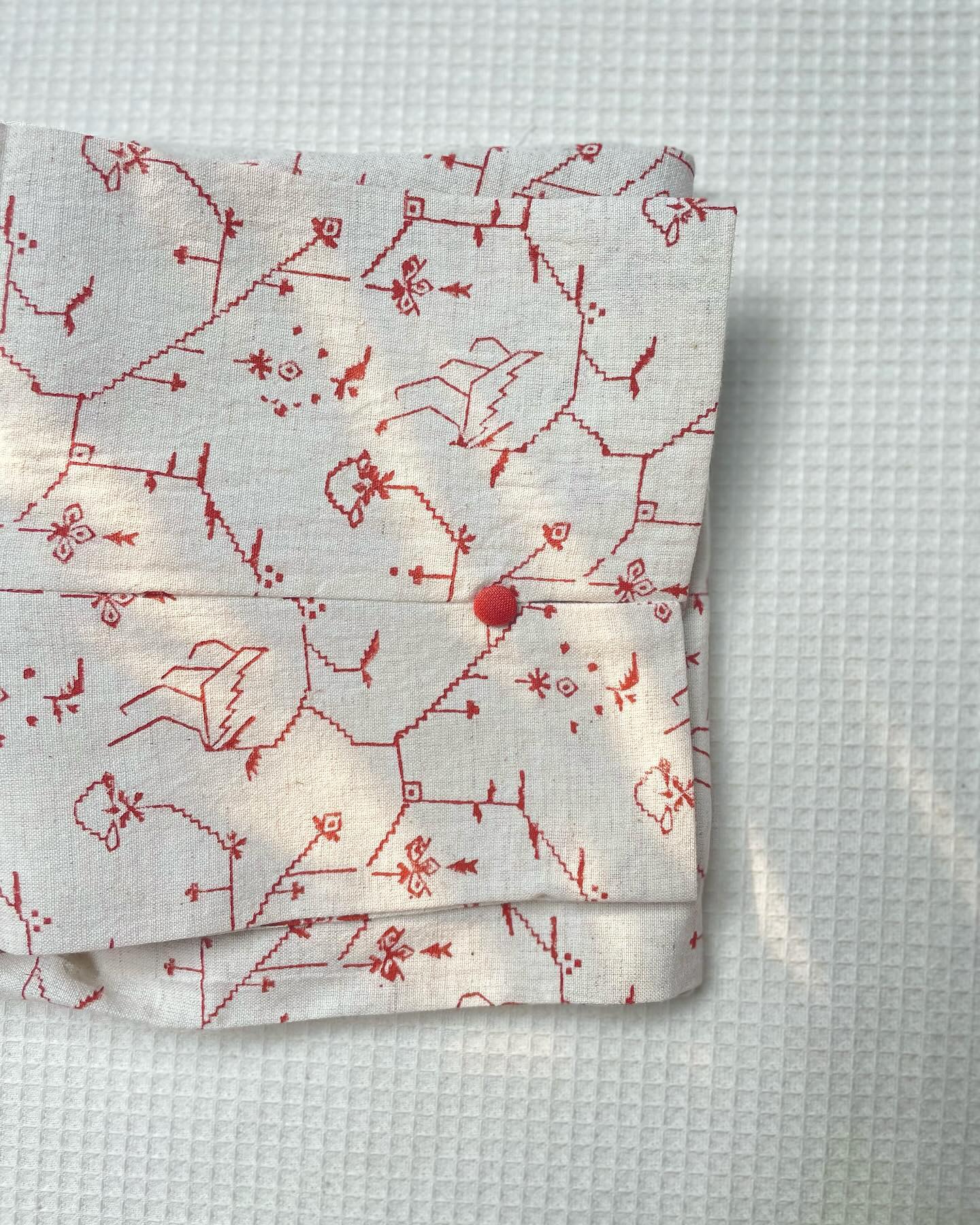 The Sunburn ensemble features intricate hand block printing, paired with a hand-beaded cotton kurta in warm, glowing tones. A breezy Kota cotton dupatta completes the look, making it effortlessly stylish and wearable all day.